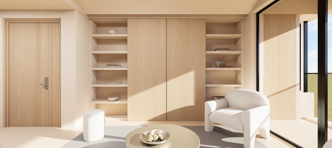 Sala con enchapado encino blanco con veta y tablero mate claro